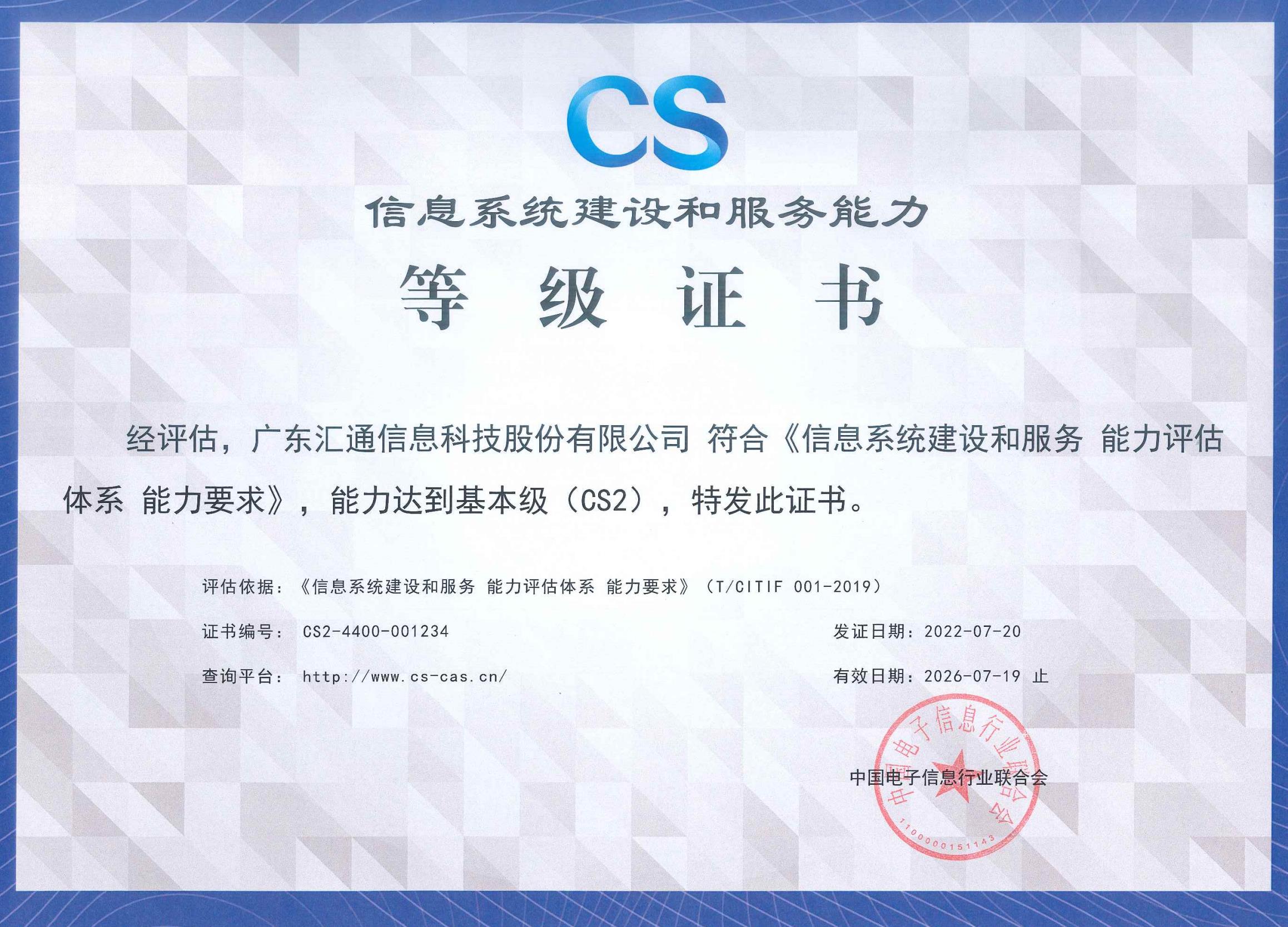 信息系统建设和服务能力CS2级证书